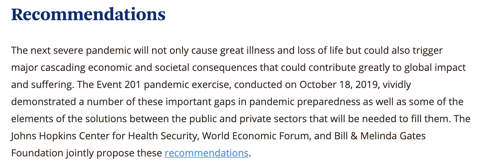 Johns Hopkins & the Bill & Melinda Gates Foundation hosted Event 201.