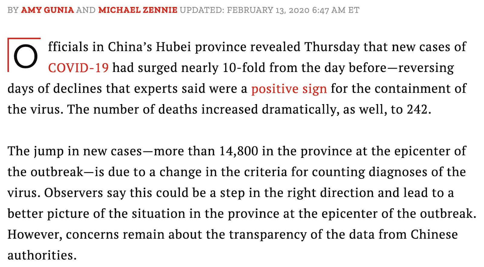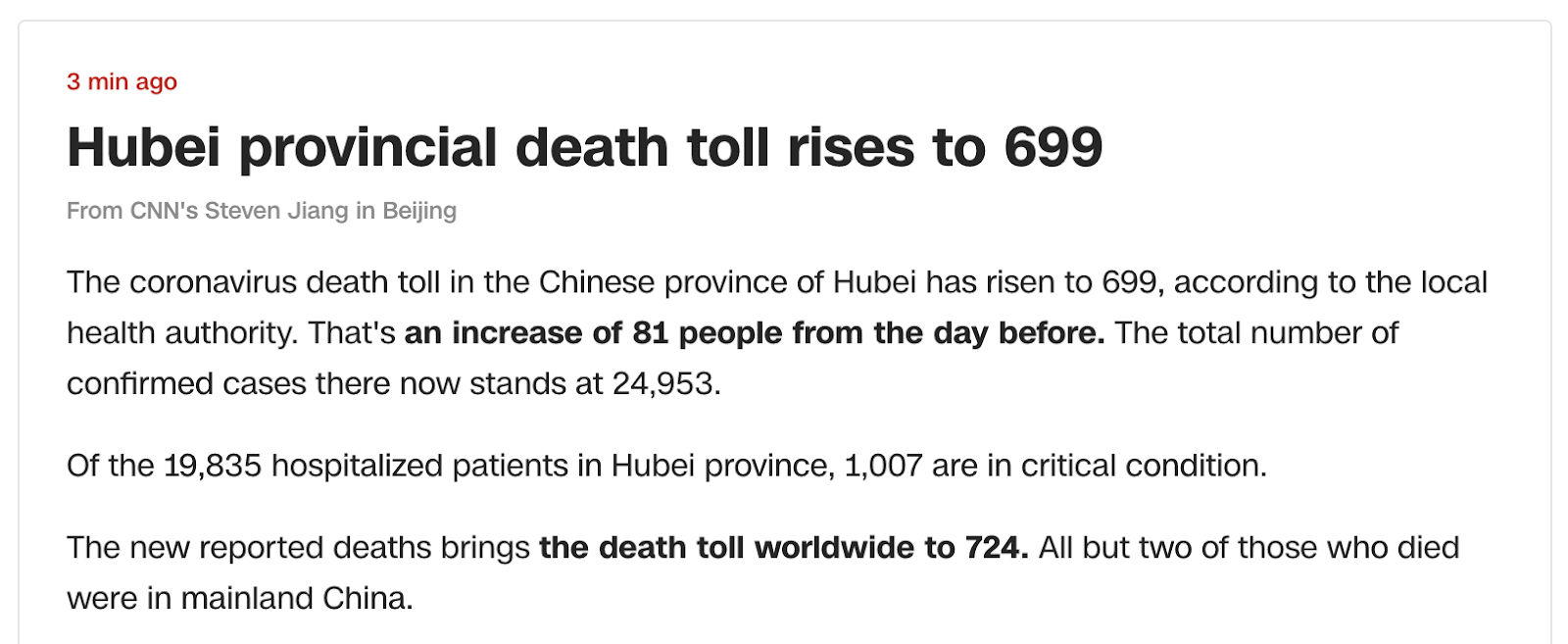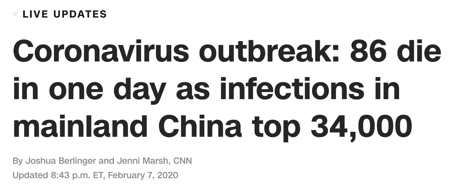 It is being reported that February 7 has been the deadliest day for the virus yet. Again, every inch of this story has been news by the numbers.