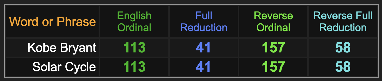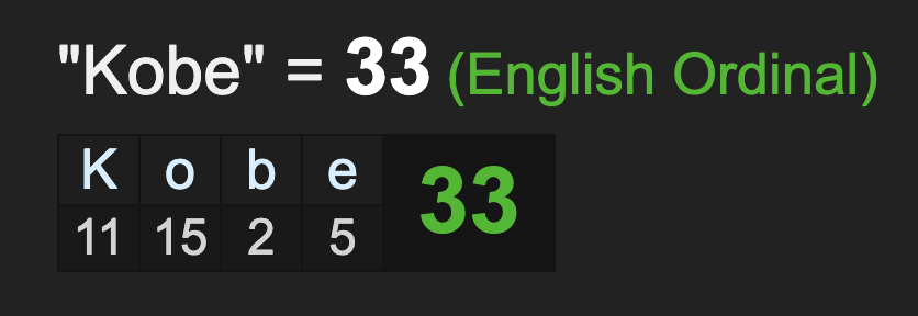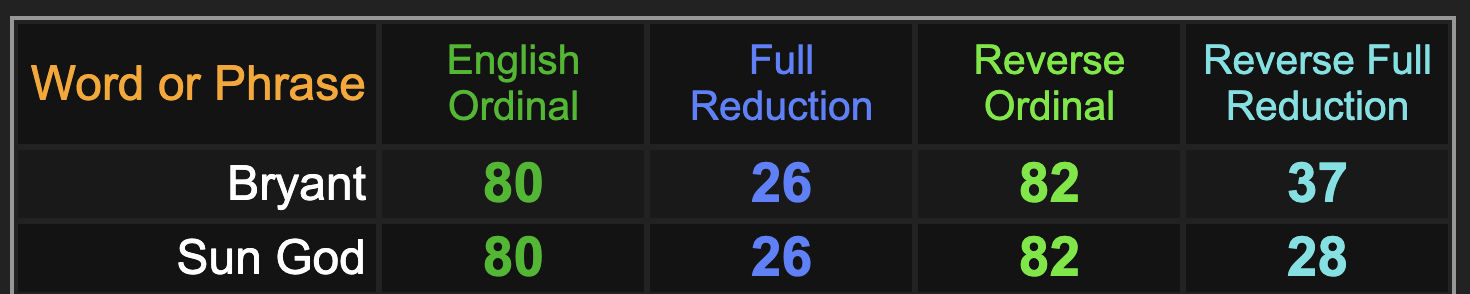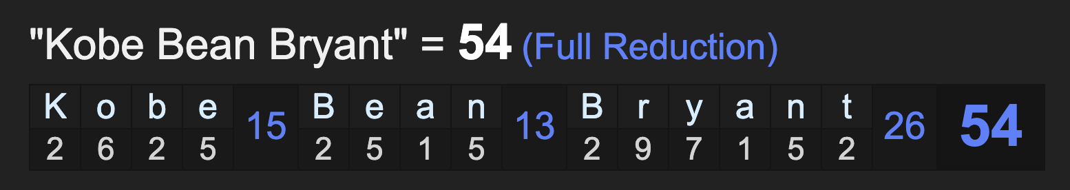 And don’t forget how ‘Kobe Bean Bryant’ sums to 54, like ‘sun’.