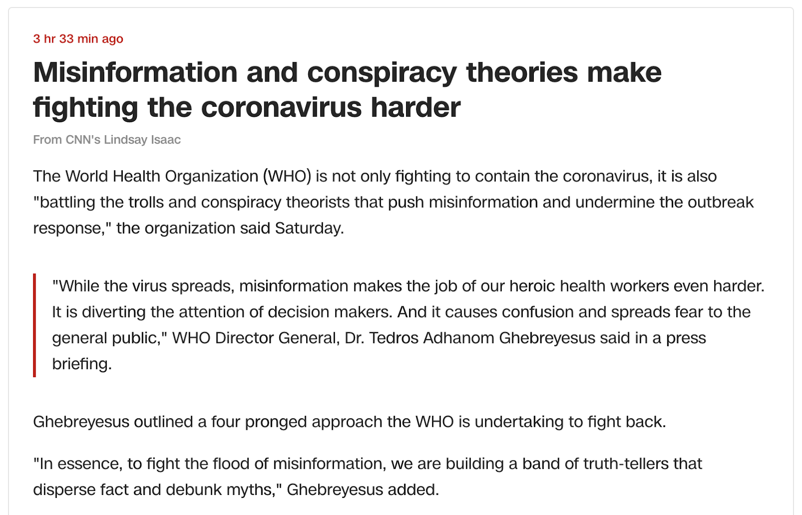Mainstream Media says “misinformation and conspiracy theories” are making fight against Coronavirus harder