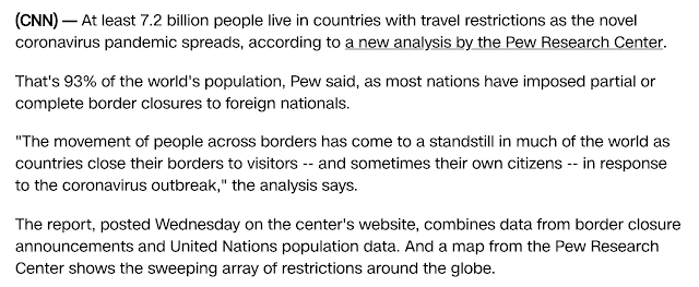 93% of world’s people live in countries with coronavirus travel bans, April 1, 2020 news