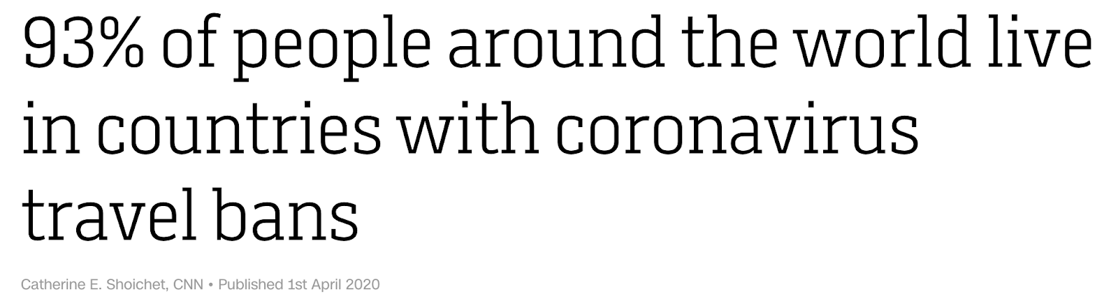 93% of world’s people live in countries with coronavirus travel bans, April 1, 2020 news