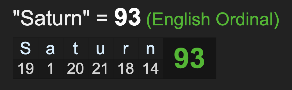Remember, 93 represents ‘Saturn’, the keeper of time.
