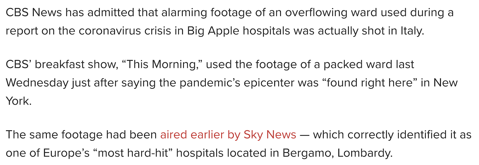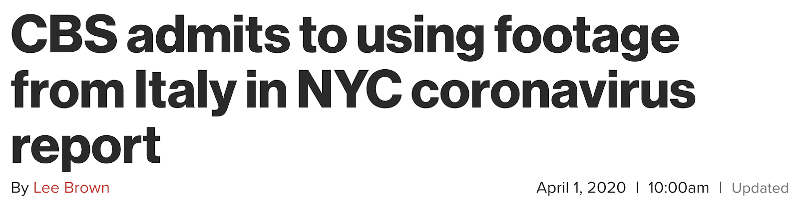 CBS admits to using footage from Italy in NYC hospital story, April 1, 2020