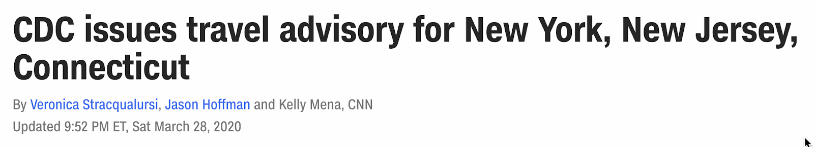 CDC issues travel advisory for New York, New Jersey and Connecticut, March 28, 2020