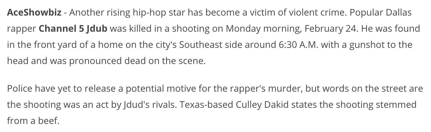 This rapper, Channel 5 J Dub, was killed Monday, February 24, 2020, a date with 46 numerology.