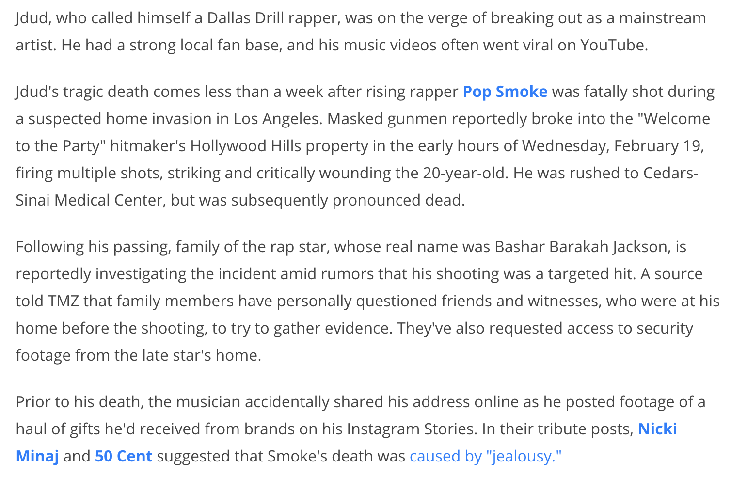 Notice the latest rapper to be killed is shown in Lakers gear, and he was killed February 24, 2020, the date of the Kobe Bryant Memorial. He was killed in Dallas.