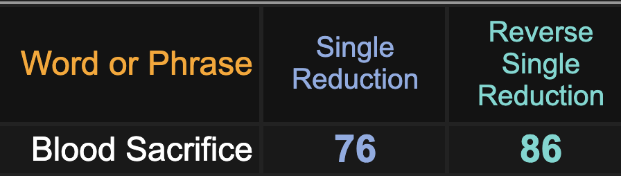*Blood Sacrifice = 76 / 86 *Human Sacrifice = 76 / 86 *Dead on Jeff Bridge’s 76th day of his age