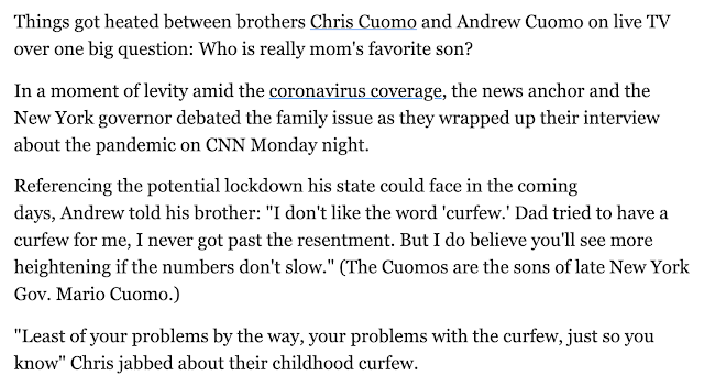 Chris & Andrew Cuomo’s mother’s favorite debate during coronavirus coverage, March 17, 2020, was 54-days before Mother’s Day, May 10, 2020