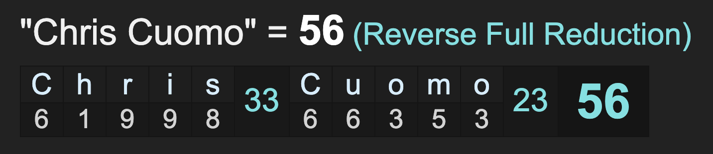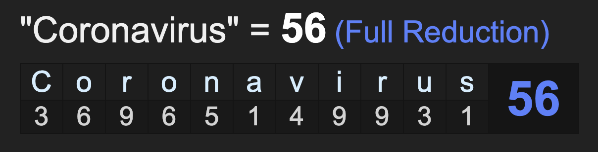 And don’t forget the numerous other 56s we have covered, including California going into lockdown after their governor, Gavin Newsom, stated 56% of people would come down with the coronavirus over the course of the next eight weeks.