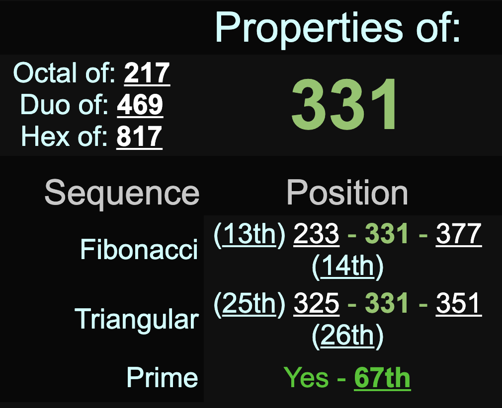 This news comes March 31, or 3/31, like 331, the 67th prime.