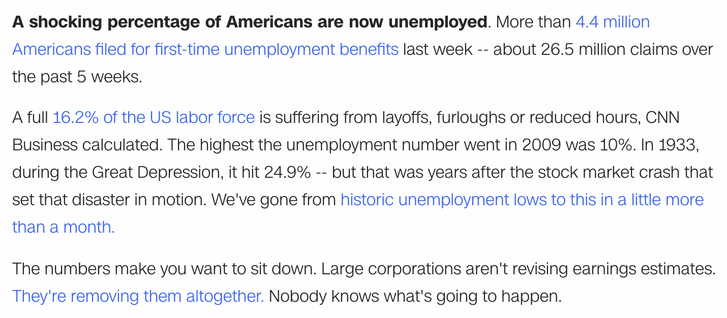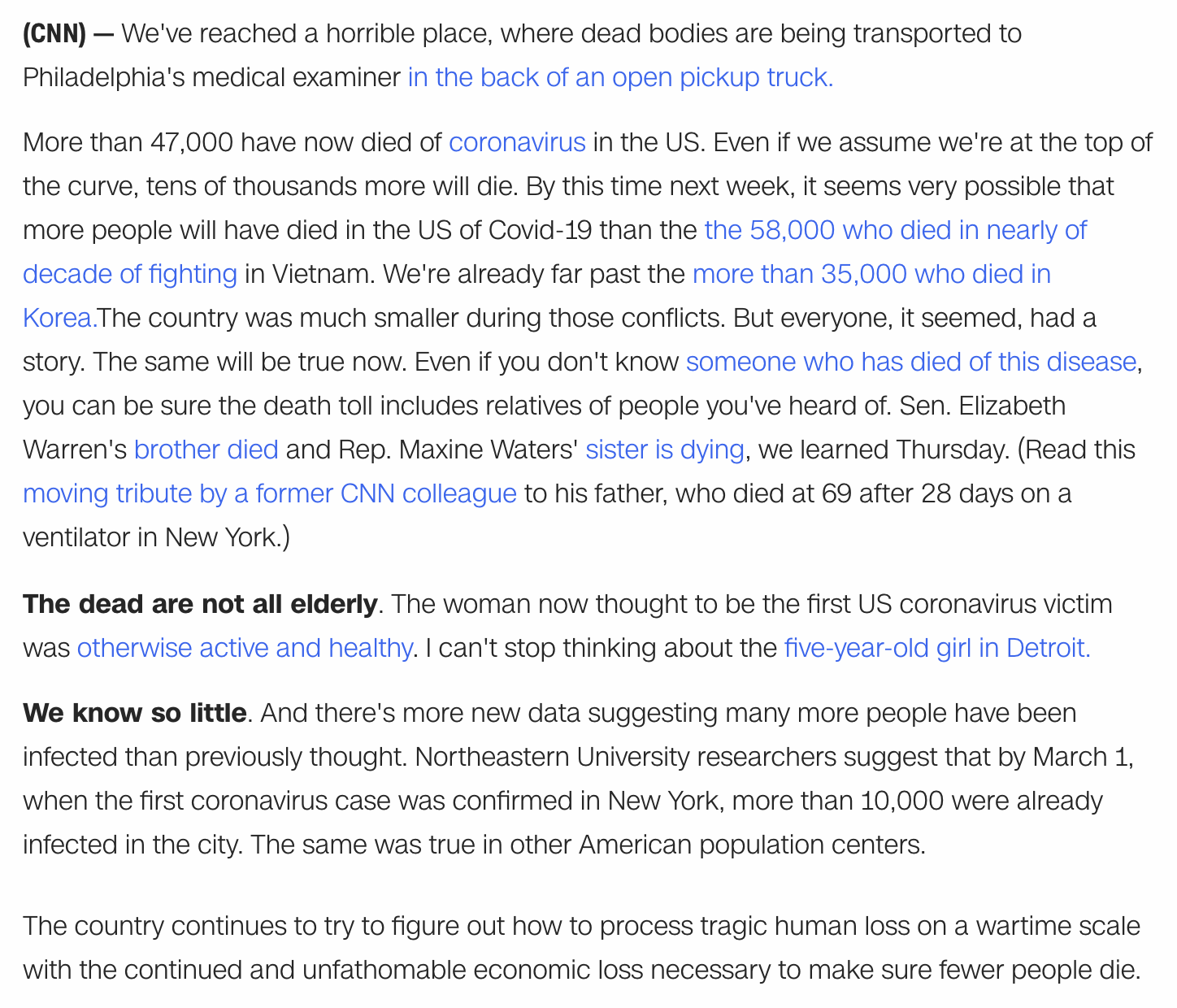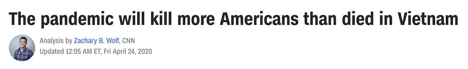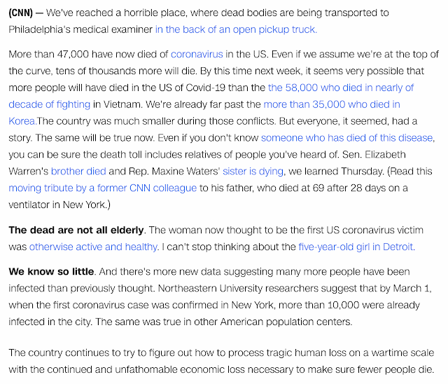 CNN writes the coronavirus pandemic will kill more Americans than Vietnam, April 24, 2020, as death toll passes 47,000
