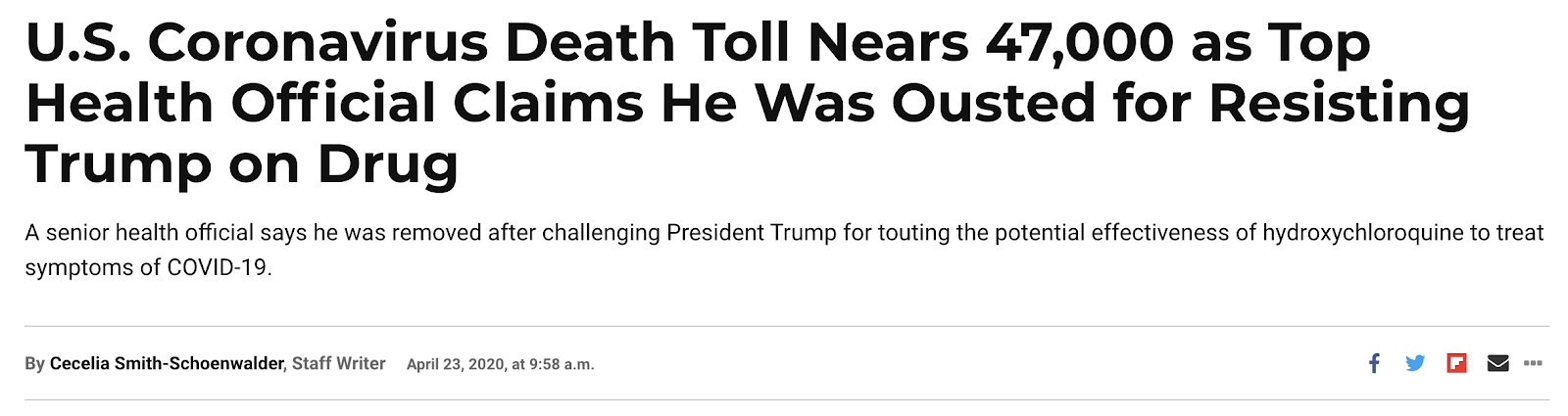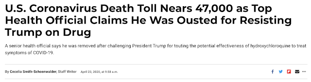 The headline about 47,000 was prominent April 23, 2020, a date with 47 numerology.