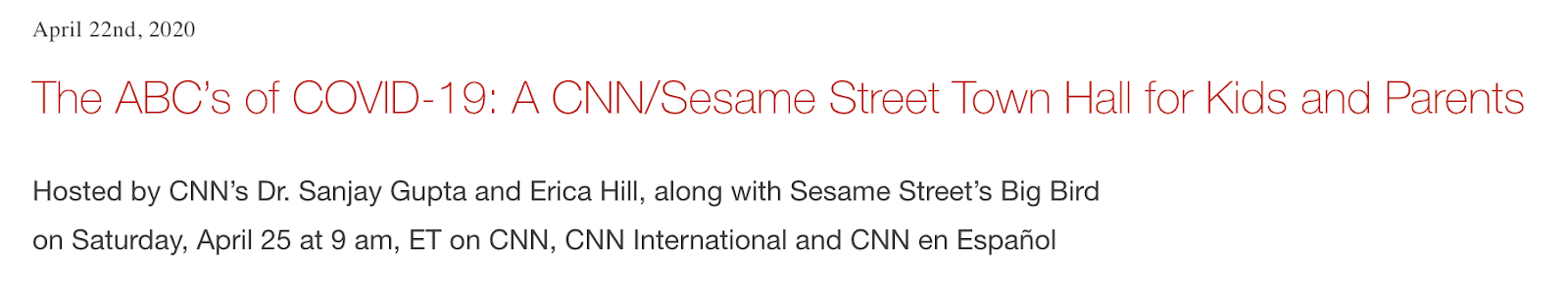 The ABC’s of COVID-19: A CNN/Sesame Street Town Hall for Kids and Parents