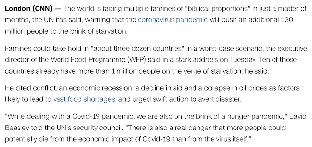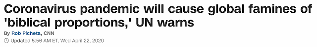 Coronavirus pandemic to cause global famines of biblical proportions, April 22, 2020 news
