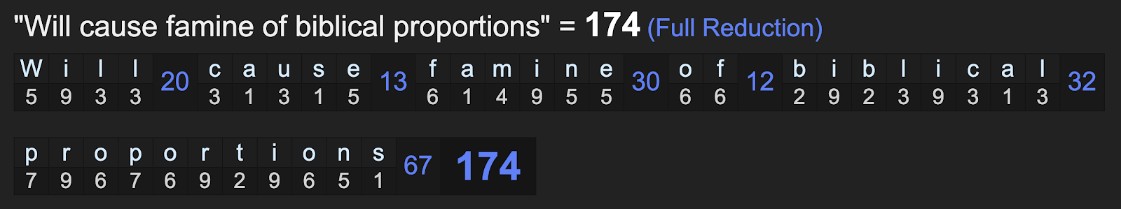 Notice the emphasis on ‘will cause famine of biblical proportions’