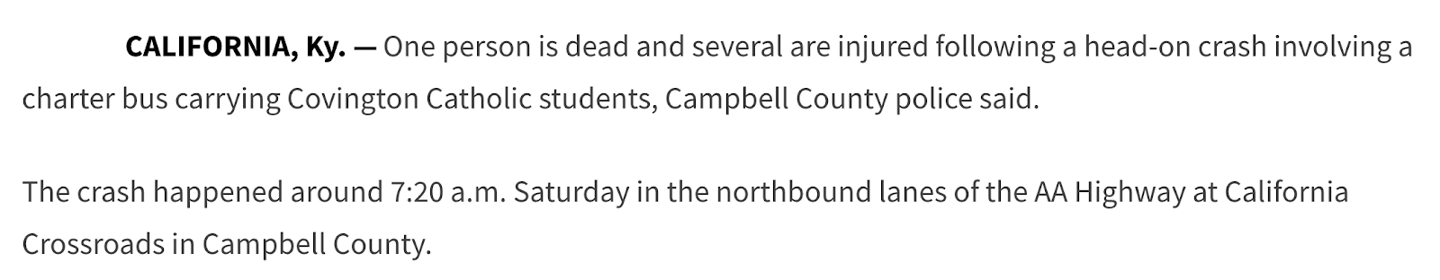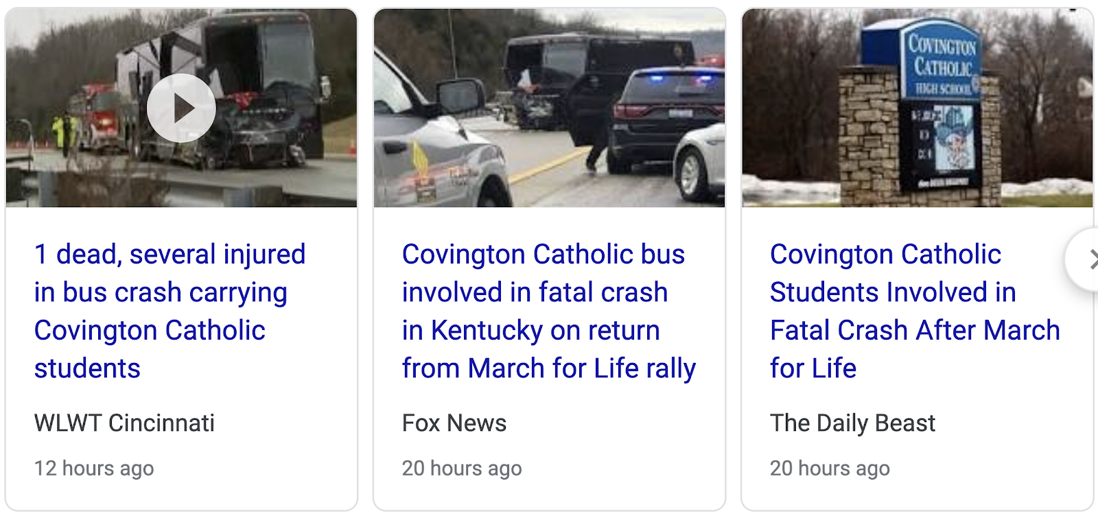 Covington Catholic High School bus involved in deadly accident while returning from March for Life D.C. rally, January 25, 2020