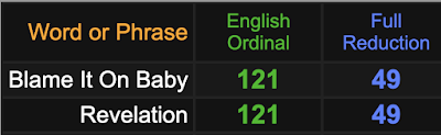 Notice the mask, and realize this comes out at the time of the coronavirus outbreak, which began January 21, 2020 in the U.S. Blame It On Baby sums to 121 and 49, reminding of all the ‘Revelation’ encoding, and that the first case was found in ‘Washington’ State.