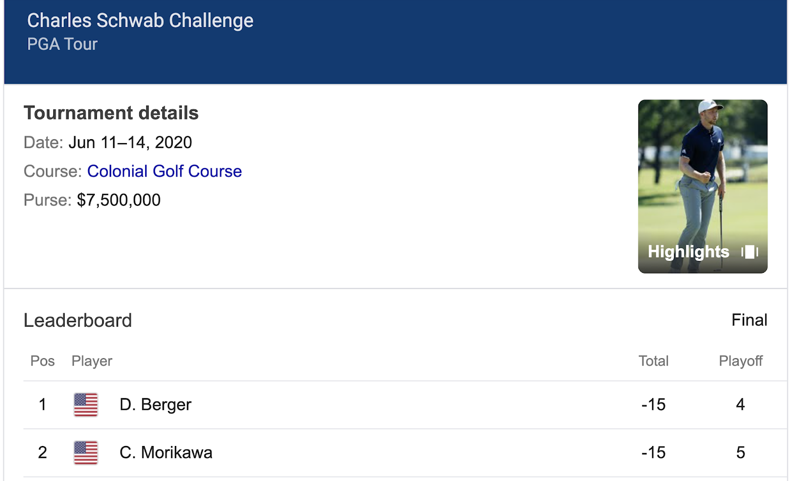On the 74th birthday of Donald Trump, June 14 1946, the 74th Charles Schwab Challenge has concluded for the PGA. And we know how much Trump likes ‘golf’.