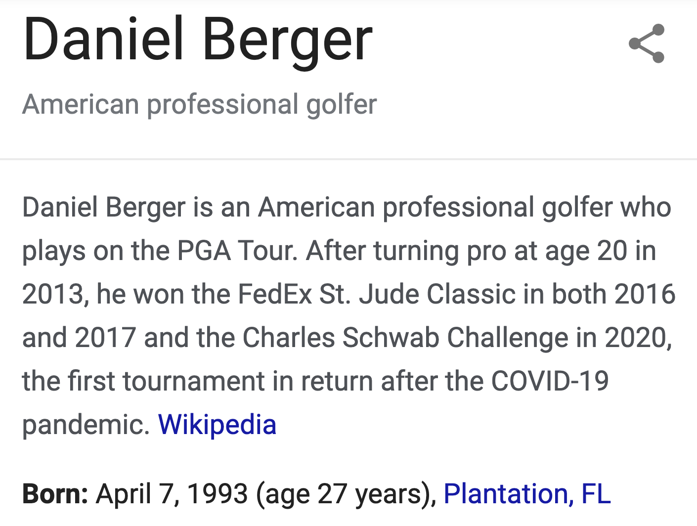 The battle for first was between Daniel Berger and Colin Morikawa, in a playoff. Notice, both of their scorecard names sum to 40, going with the 40 date numerology.