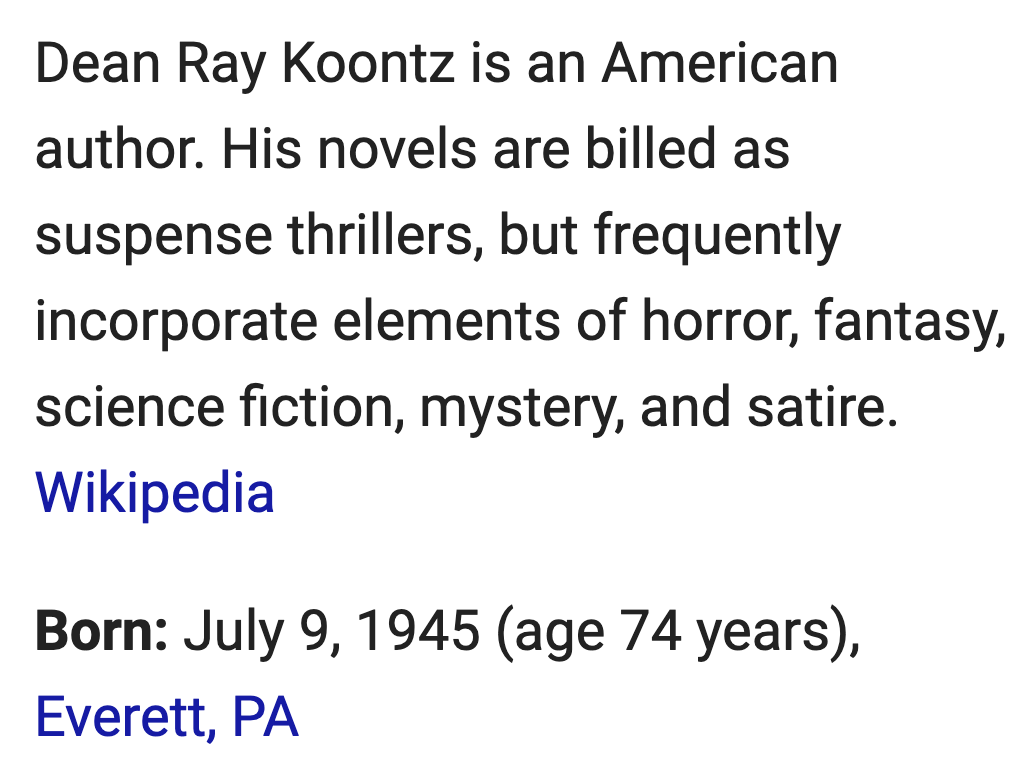 Notice how Dean Koontz’s full name syncs with Year of the Rat.