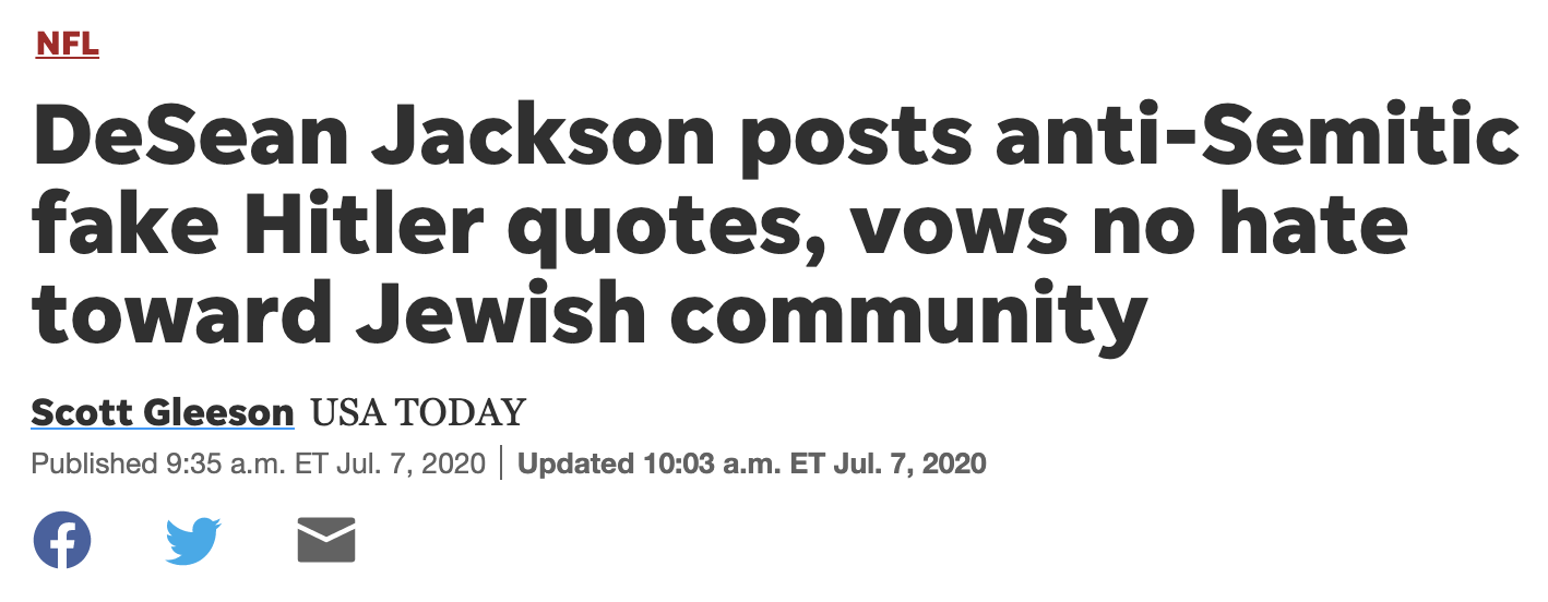 DeSean Jackson accused of being anti-Semitic for social media posts July 4th weekend