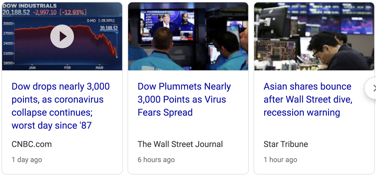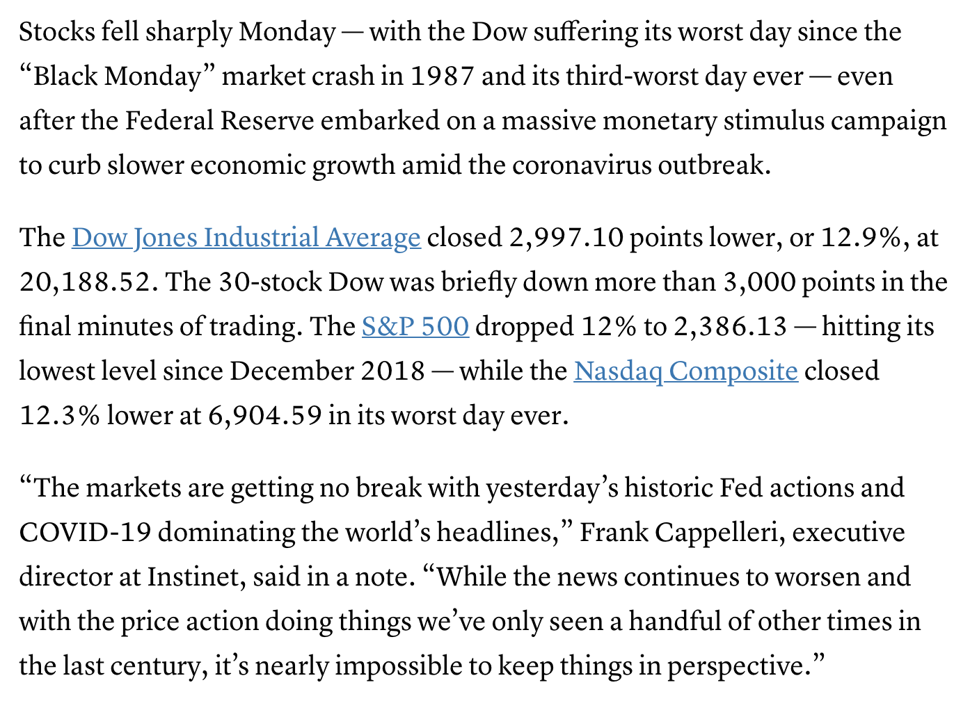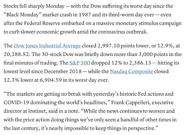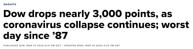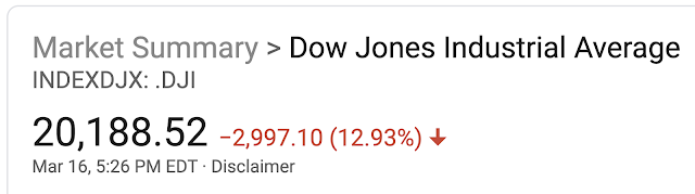 Dow Jones records worst point drop in history, 2,997.10 points, March 16, 2020