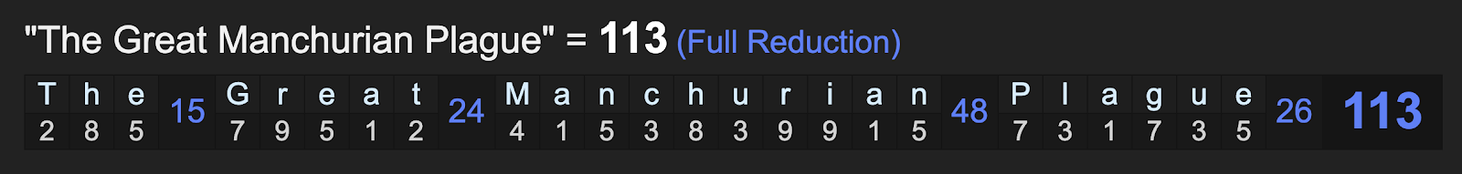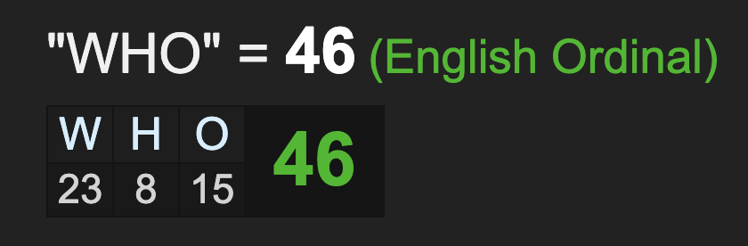 Don’t forget, WHO, the acronym for the World Health Organization, has gematria of 46, like ‘chaos’ and ‘virus’. This is the agenda, order out of chaos. And it is a Masonic agenda. Speaking of the masons, the number of the Scottish Rite, is 113.