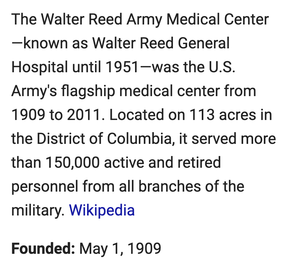 The Scottish Rite have their fingerprints all over Walter Reed, which of course is located in Washington D.C., named after the 33rd Degree Scottish Rite Freemason, George Washington.