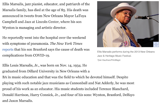 Ellis Marsalis Jr., legendary New Orleans musician and patriarch, dead at 85, April 1, 2020, from coronavirus / COVID-19