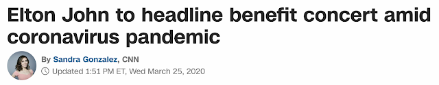 A ‘Coronavirus Pandemic’ benefit concert on March 29, 2020, headlined by Elton John? I wonder how they came up with this idea…