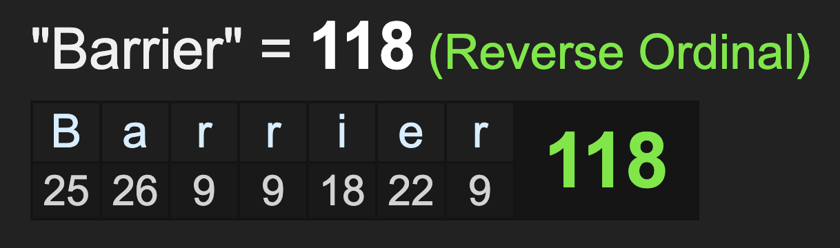 Notice his November 8, or 11/8 birthday.  *Barrier = 118 *Death = 118
