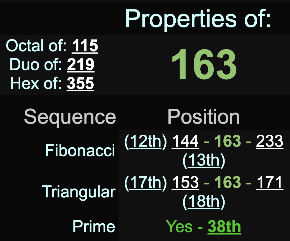She died Mach 16, or 16/3, like 163, the 38th prime number.