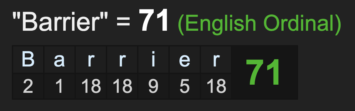 The name Barrier sums to 71, the 20th prime.  That’s Eric B.’s surname.