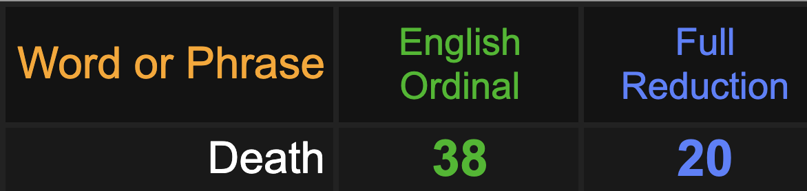 And don’t forget it is 2020, the year of ‘death’, as we predicted it would be.