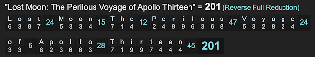 On April 11, 2020, the 50-year anniversary of the Apollo 13 mission, Tom Hanks, who starred in the film, paid tribute to the mission. Notice the book which the film is based on, ‘Lost Moon: The Perilous Voyage of Apollo Thirteen’ has Gematria of 201. I doubt this is a coincidence, especially after Tom Hanks’ Event 201 tribute Instagram post.