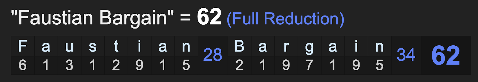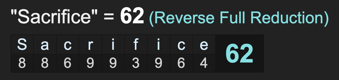 And as a reminder, 62 connects to ‘sacrifice’ and ‘faustian bargain’.
