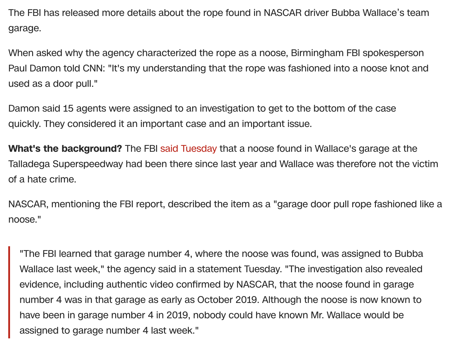 FBI provides details on noose found in Bubba Wallace’s garage, June 23, 2020