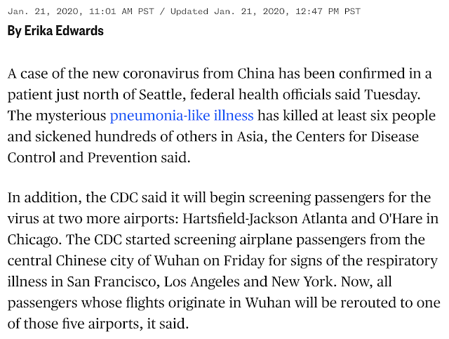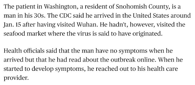 First case of Wuhan Coronavirus in U.S. found north of Seattle, January 21, 2020