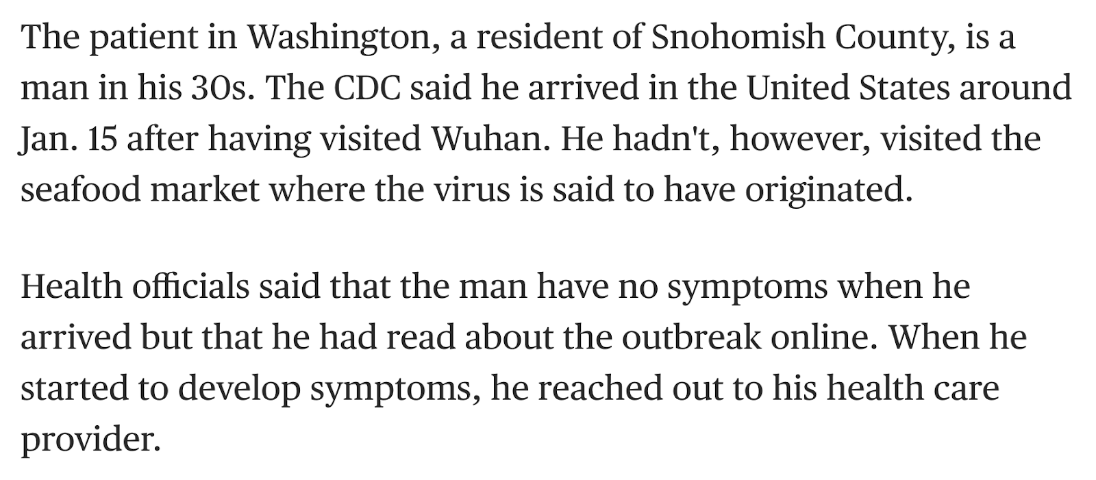 First case of Wuhan Coronavirus in U.S. found north of Seattle, January 21, 2020