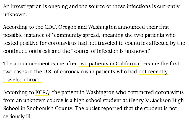 Also worth remembering is the first coronavirus case in the U.S. was in Seattle, January 21, 2020.