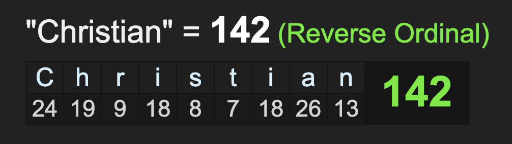 The word ‘Christian’ sums to 142.