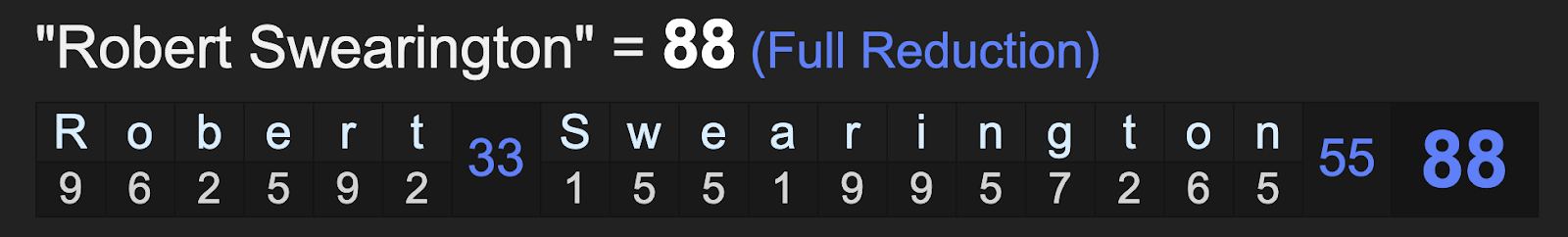 Further, it’s a check made for $88,500 to Robert Swearington, and his name sums to 88.