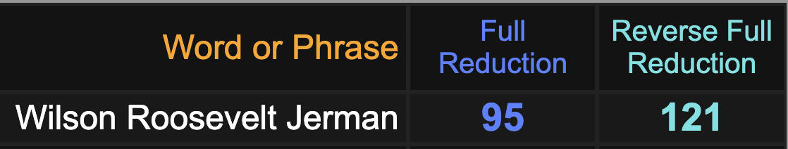 His name also sums to 95, as well as 121, both signature numbers in the ongoing “outbreak”.