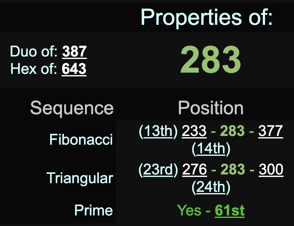 The name Wilson Roosevelt Jerman sums to 283, the 61st prime.