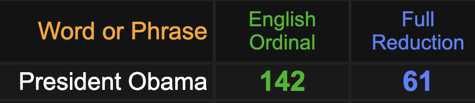 This is headline news May 21, 2020, the 142nd day of the leap year. Notice how both ‘coronavirus’ and ‘President Obama’ equate to 142.
