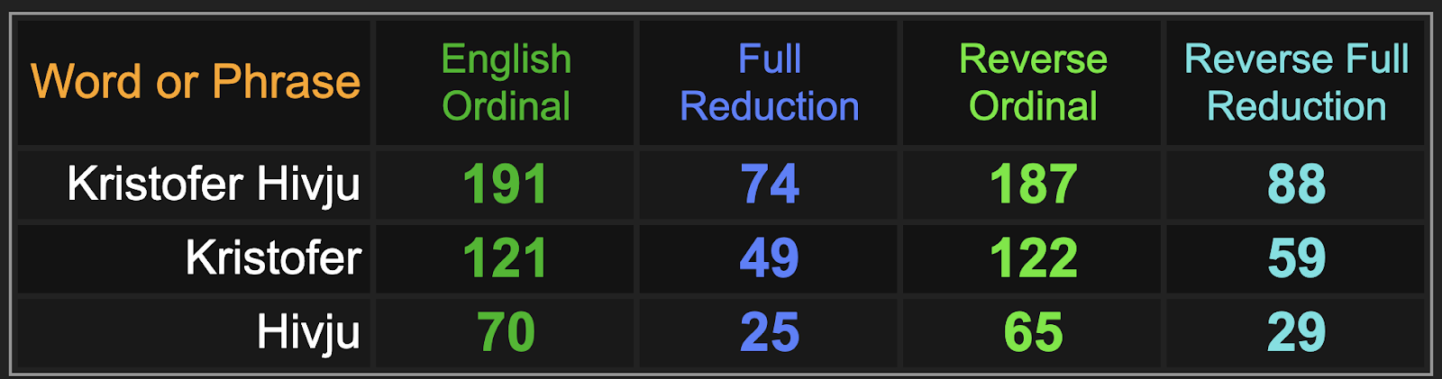 His name gematria is as follows: