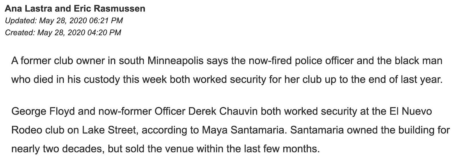 George Floyd & Derek Chauvin worked security at same night club, El Nuevo Rodeo, May 28, 2020 news