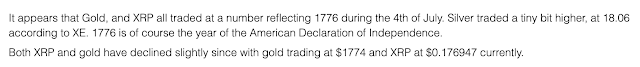 Gold and XRP trade at “1776” on July 4, 2020, reminding of the July 4, 2019 earthquake ritual…