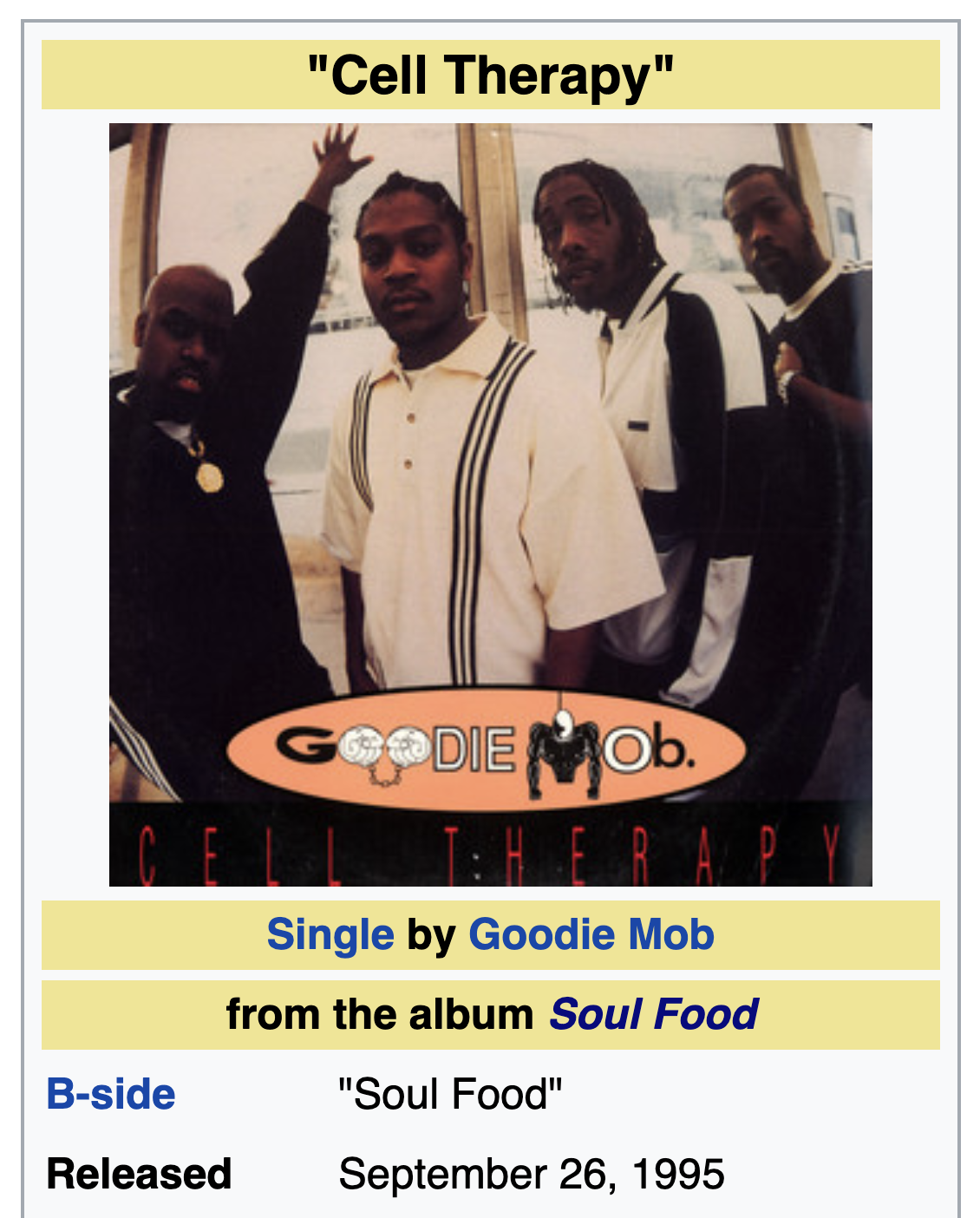 The lyrics to this song are telling: https://www.google.com/search?q=goodie+mobb+cell+therapy+lyrics&oq=Goodie+Mobb+Cell+Therap&aqs=chrome.0.69i59j0j69i57j46j0l4.5823j0j7&sourceid=chrome&ie=UTF-8